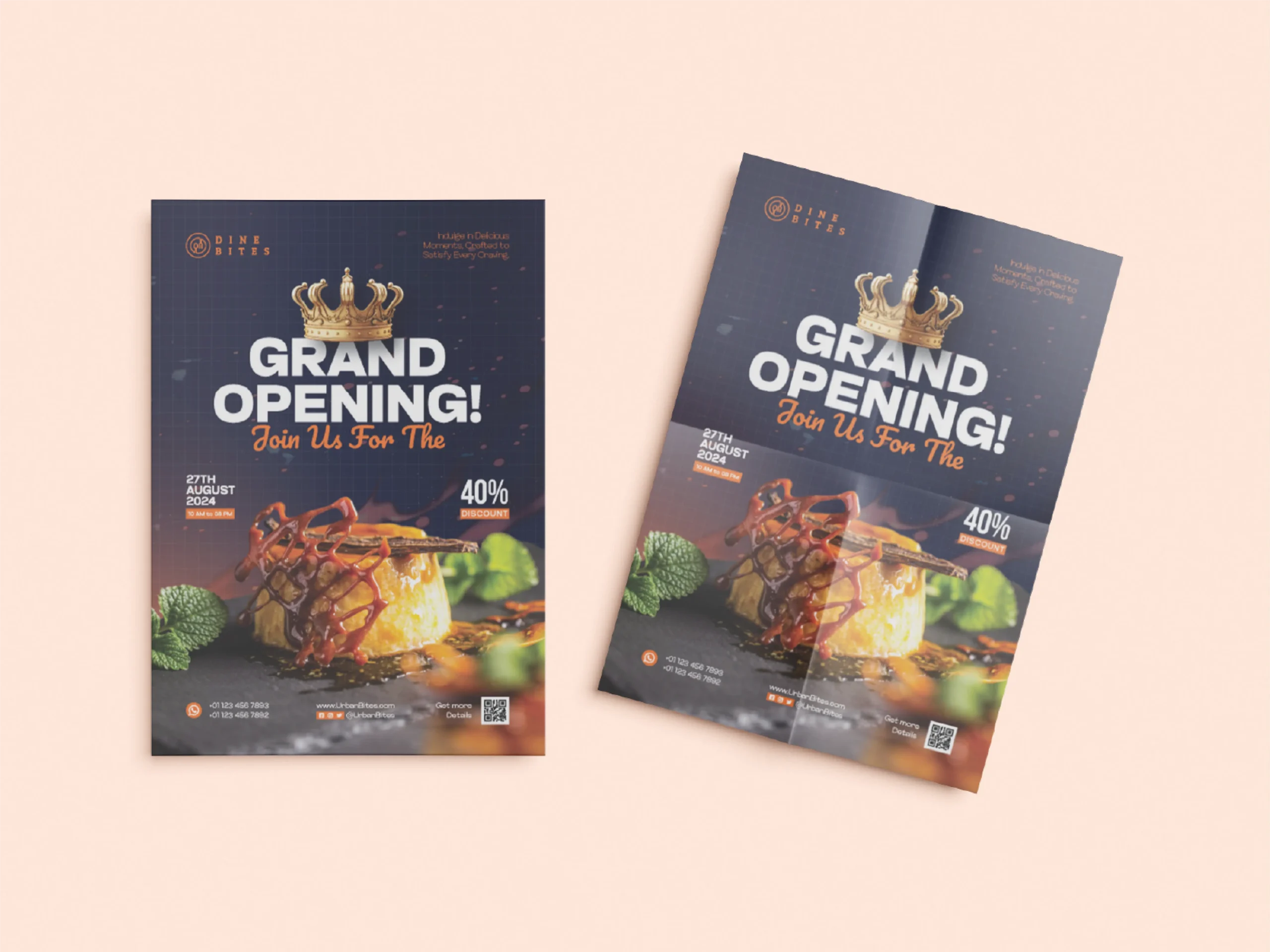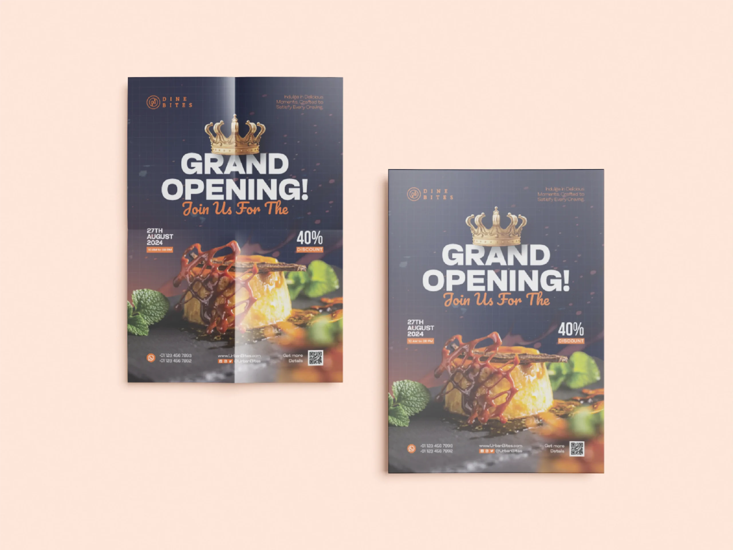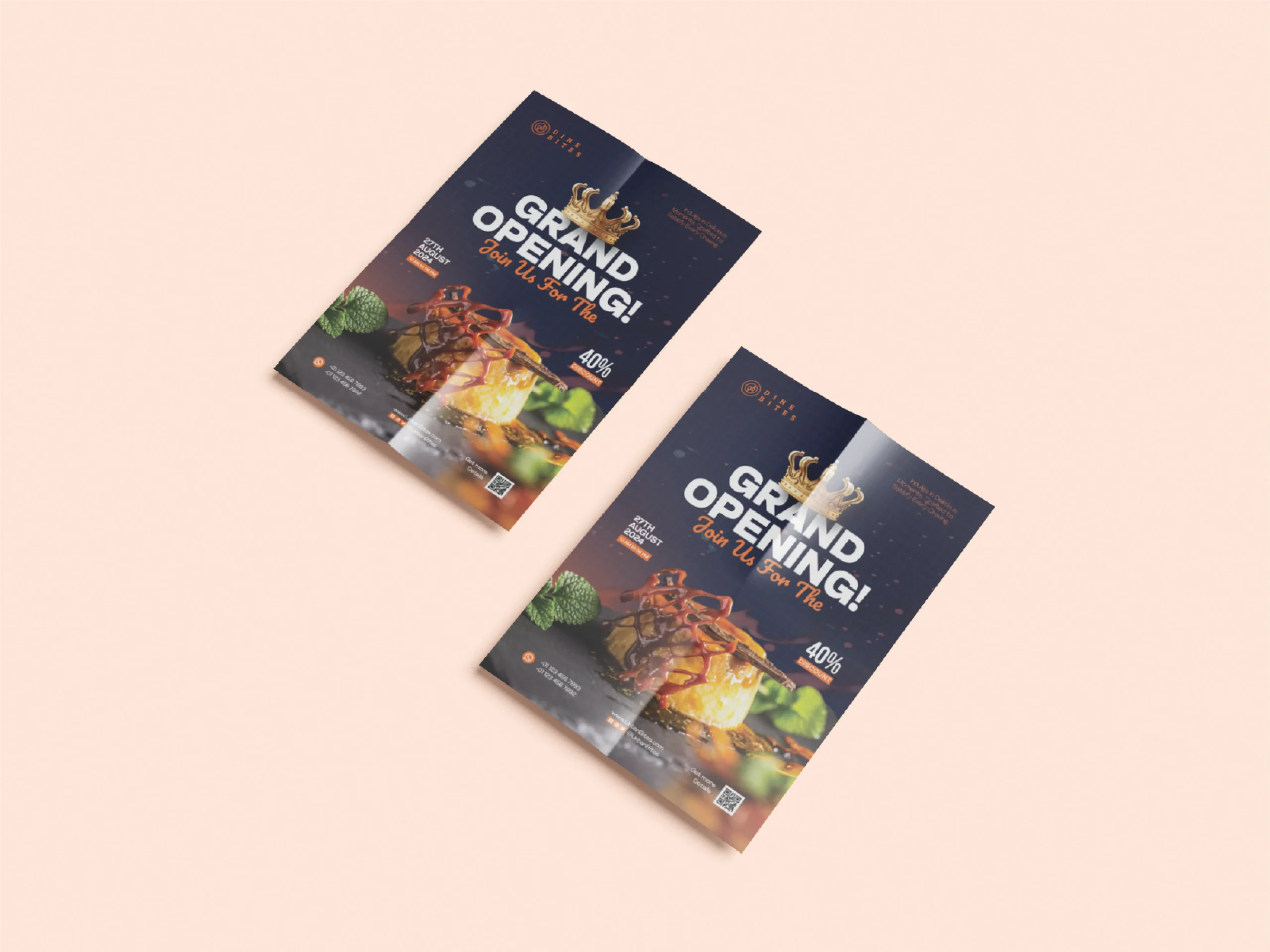 Celebrate the launch of Dine Bites with a vibrant and inviting Grand Opening Flyer that sets the perfect tone for your big day. The design combines mouthwatering visuals, bold typography, and energetic colors to attract attention and build excitement. Every element is crafted to showcase Dine Bites’ delicious offerings and create a sense of urgency that drives foot traffic.