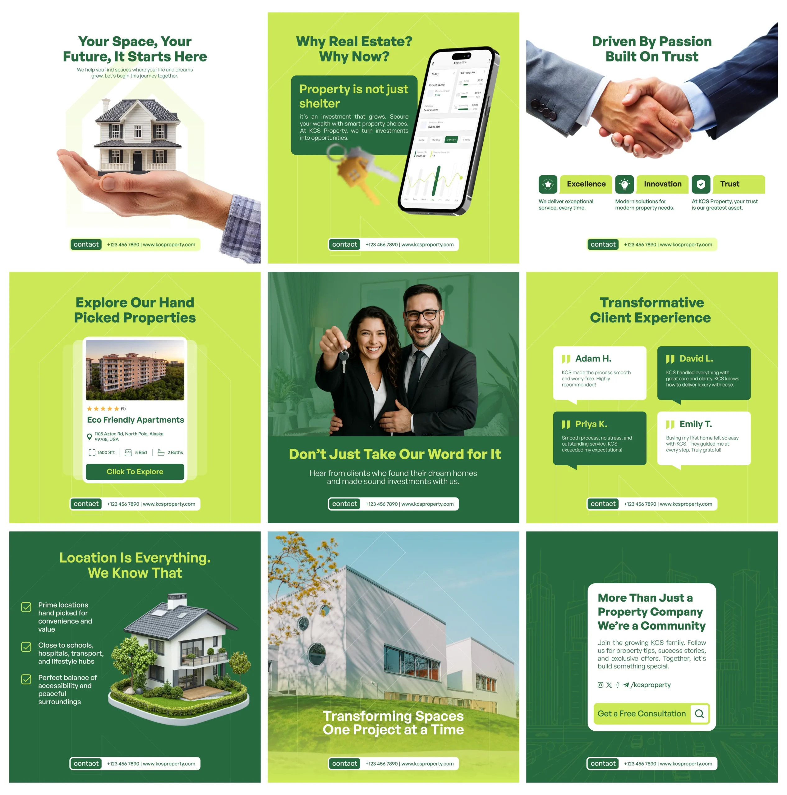 Showcase properties, build trust, and attract clients with Real Estate Social Media Design that combines professionalism with visual appeal. Each design is crafted to highlight property features with clean layouts, elegant typography, and high-quality visuals — creating a polished, trustworthy brand presence on every platform.